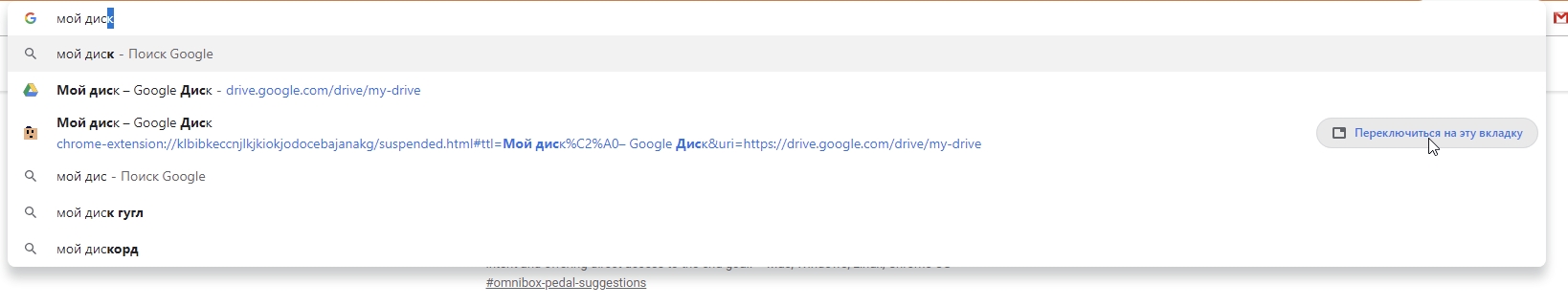 После этого нужно перезапустить браузер. Теперь при вводе запроса в омнибоксе в результатах также будут отображаться открытые вкладки.