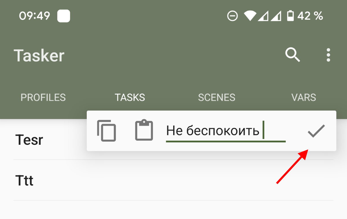 Укажите название вашей будущей задачи (к примеру, «Не беспокоить»). И нажмите на галочку для окончательного создания задачи.