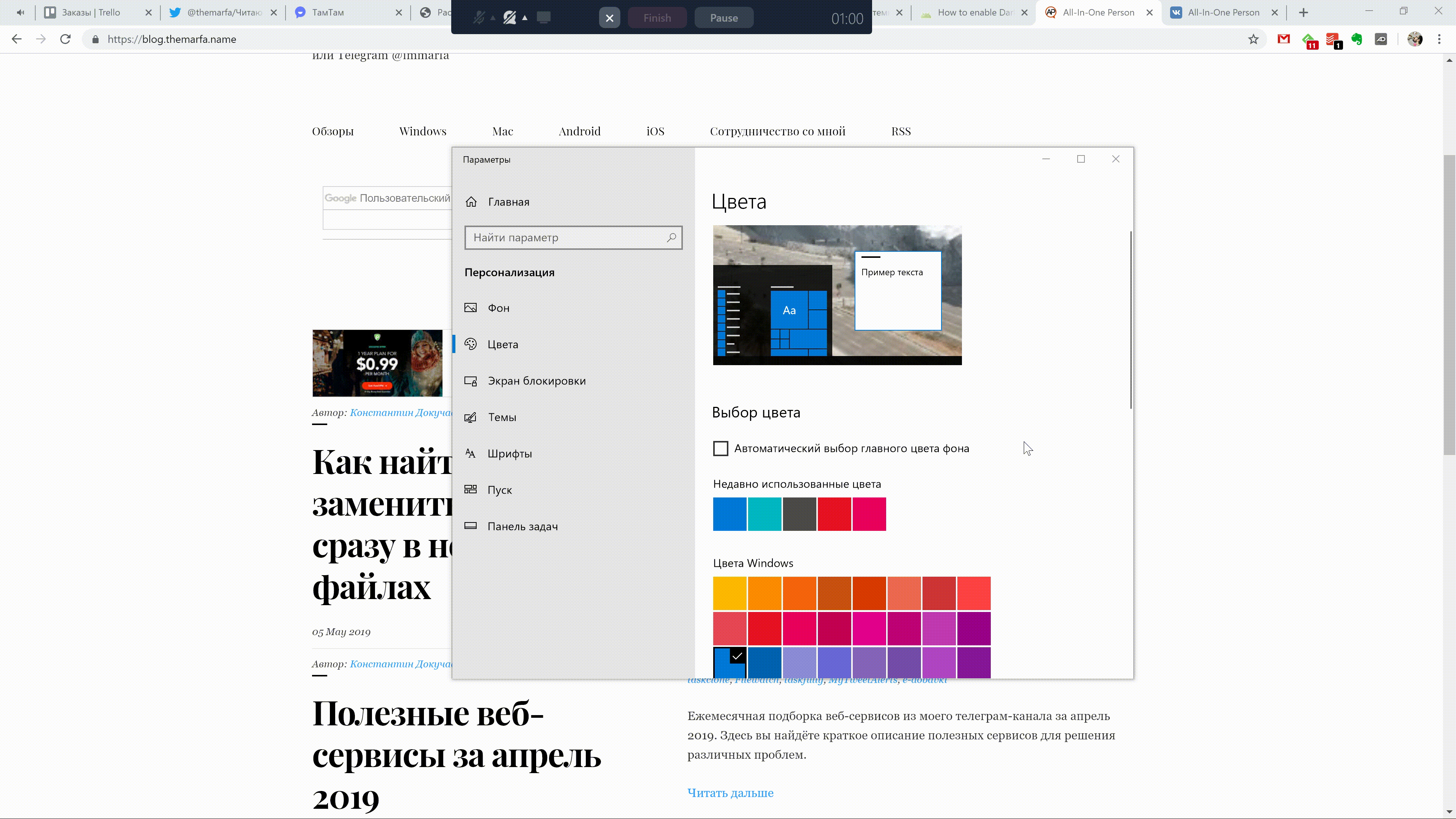 Прежде чем менять тему, убедитесь, что у вас Chrome не ниже 74-й версии. Затем нажмите на рабочем столе правой кнопкой мыши и выберите пункт «Персонализация». Перейдите в раздел «Цвета» и внизу включите тёмную тему.