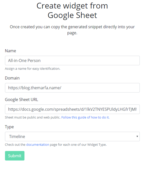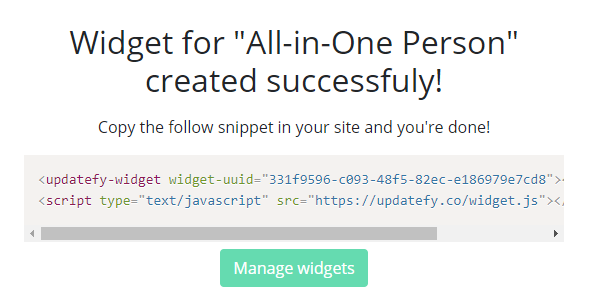 После заполнения всех данных нужно нажать «Submit» и вы тут же получите готовый код виджета: