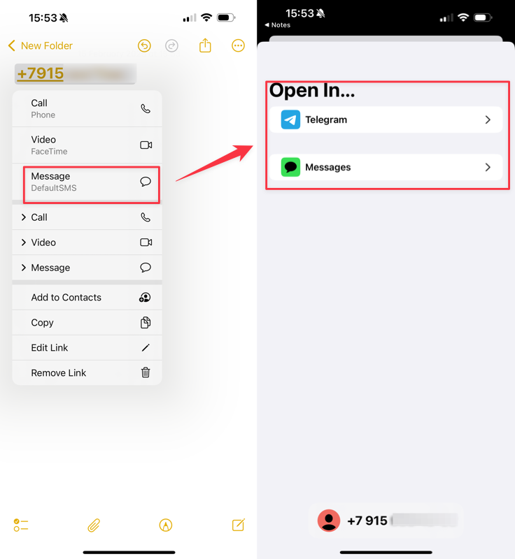 На момент написания статьи поддерживаются Telegram, WhatsApp и Signal. Теперь при попытке начать переписку будет открываться выбранное приложение или запрос на выбор приложения.
