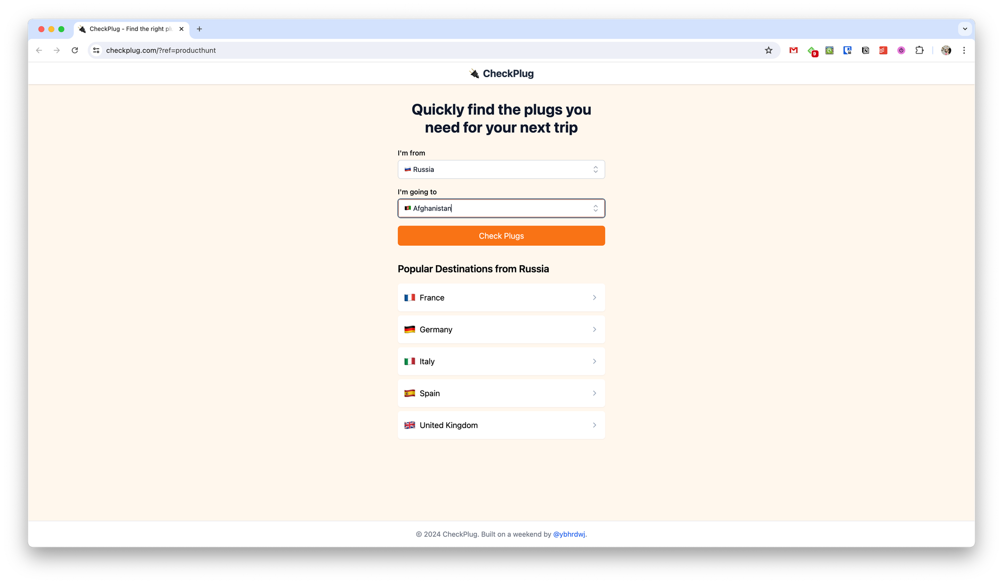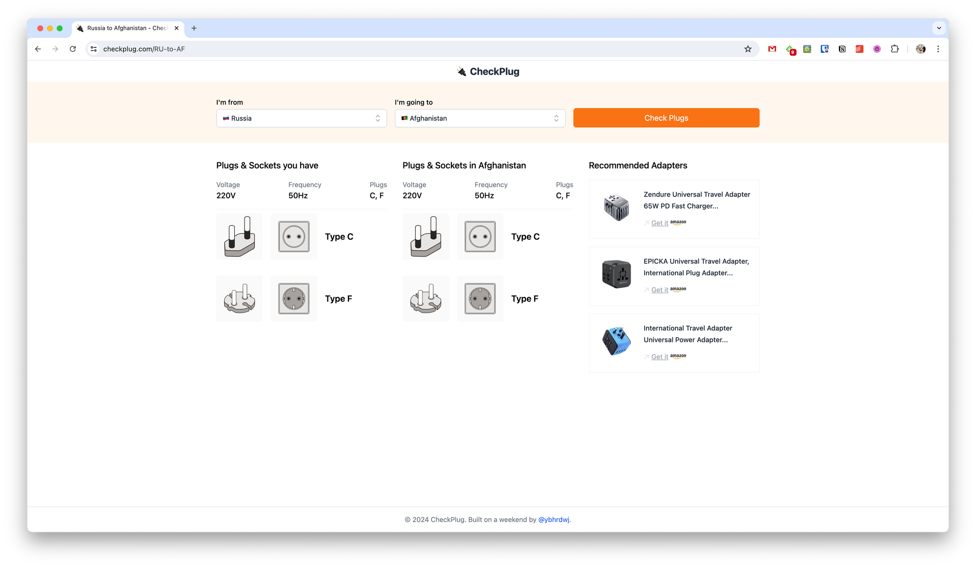 После нажатия на кнопку Check Plug отобразится информация о розетках и переходниках, которые у вас есть и которые вам понадобятся в поездке.