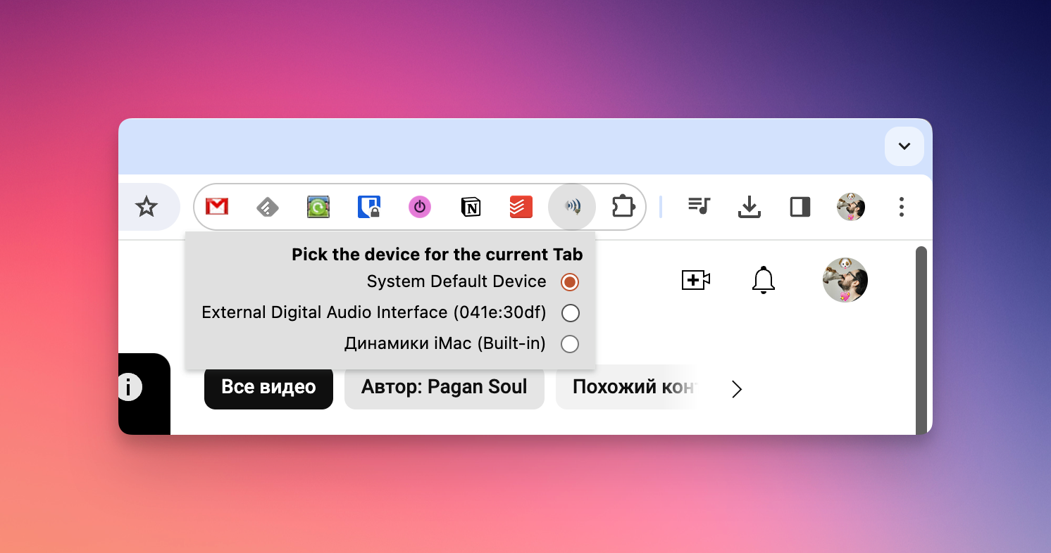 При работе в Google Chrome эту задачу поможет решить расширение AudioPick, которое позволяет указать устройство для вывода звука на конкретной вкладке.