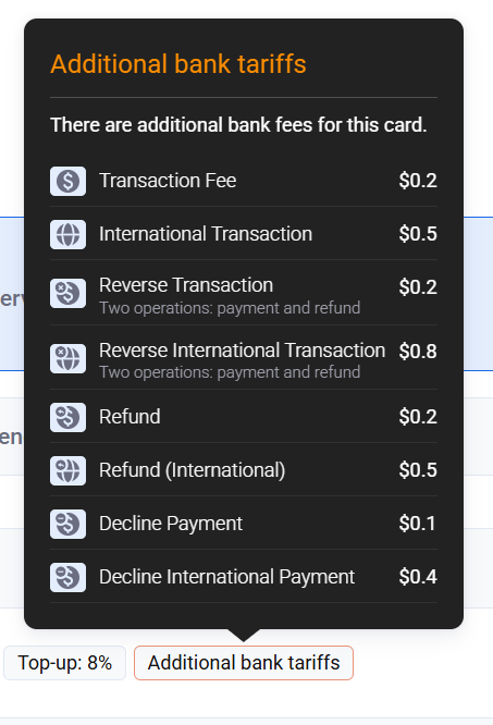 На момент написания статьи выпуск любой карты стоит $4 + 8% комиссии за пополнение. Также у каждой карты есть свои тарифы на проведение транзакций.