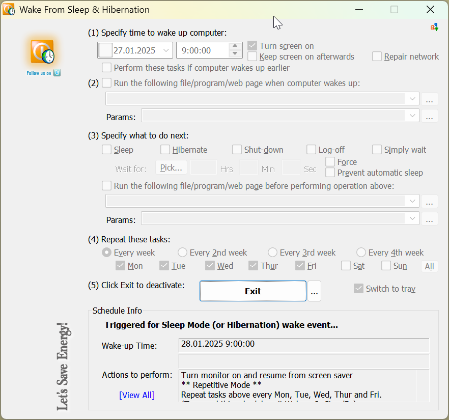Если вам нужно создать несколько расписаний, просто запустите ещё одно окно WakeupOnStandBy и повторите в нём все необходимые шаги.