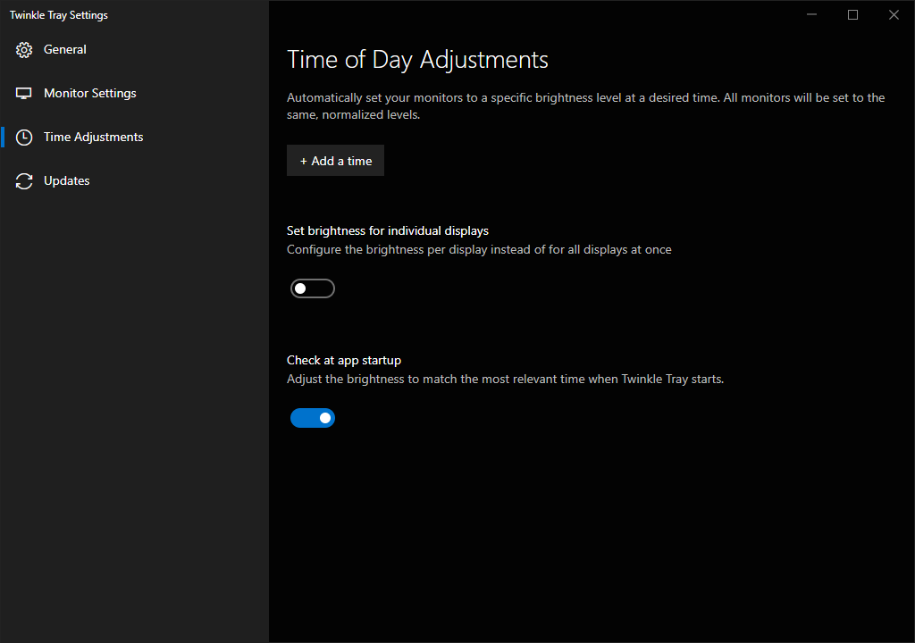 В настройках Twinkle Tray можно задать автоматическое изменение яркости по расписанию.