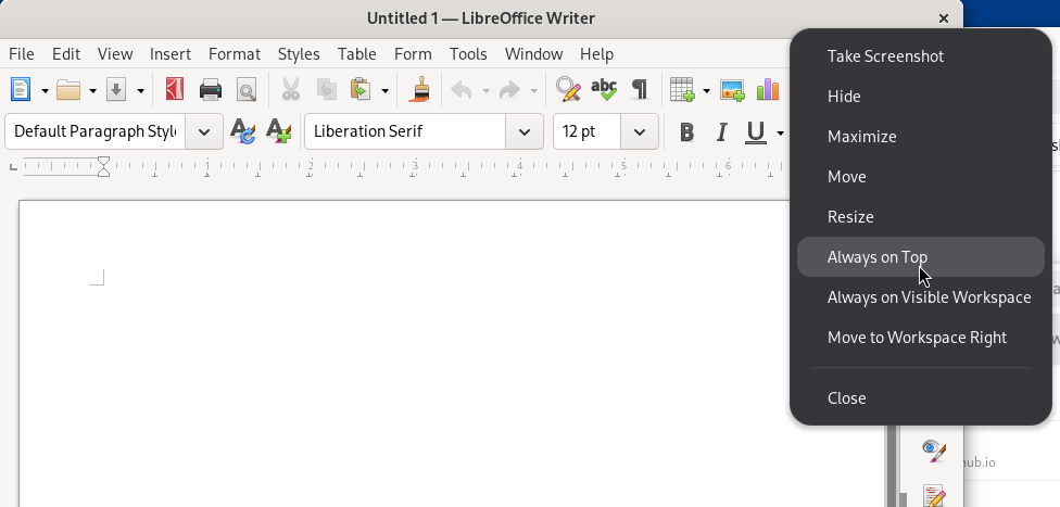 В оболочке Gnome её можно добавить с помощью утилиты Window on Top. У самой утилиты нет никаких настроек, но после её установки в контекстном меню любого окна появится пункт Always on Top.