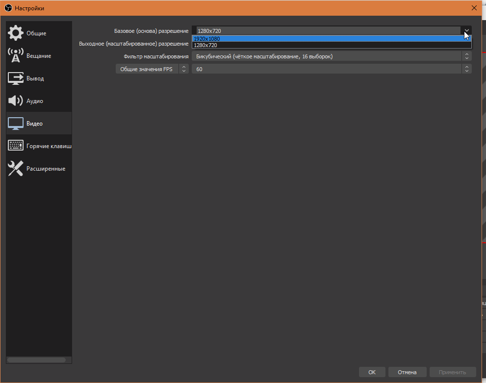 В разделе настроек перейдите в Видео и разверните меню Базовое (основа) разрешение. И выберите разрешение, которое по ширине будет равно разрешению обоих мониторов (или наибольшее). Нажмите Ok.