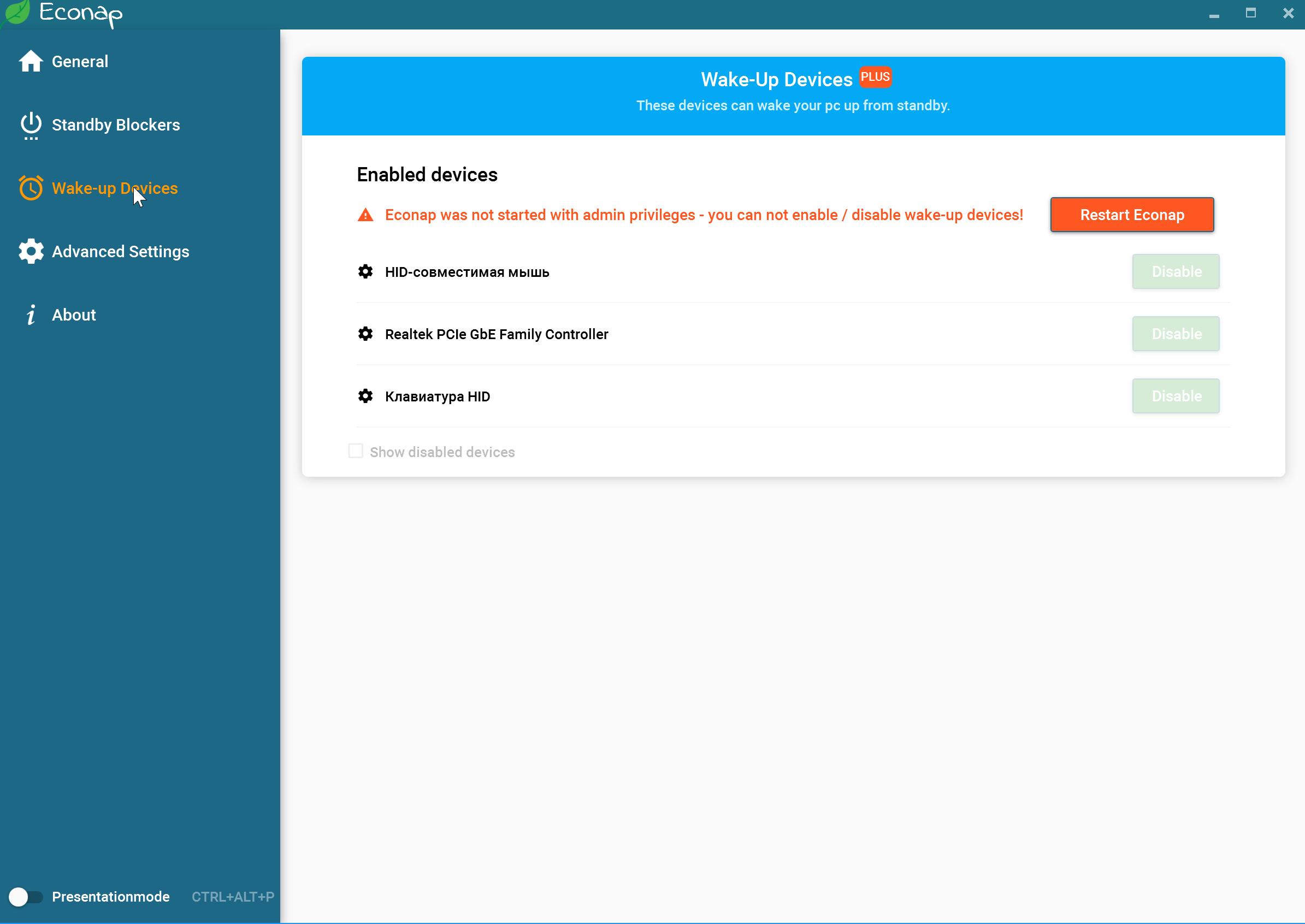 В разделе Wake-up Devices можно настроить устройства, которым можно будить устройства.