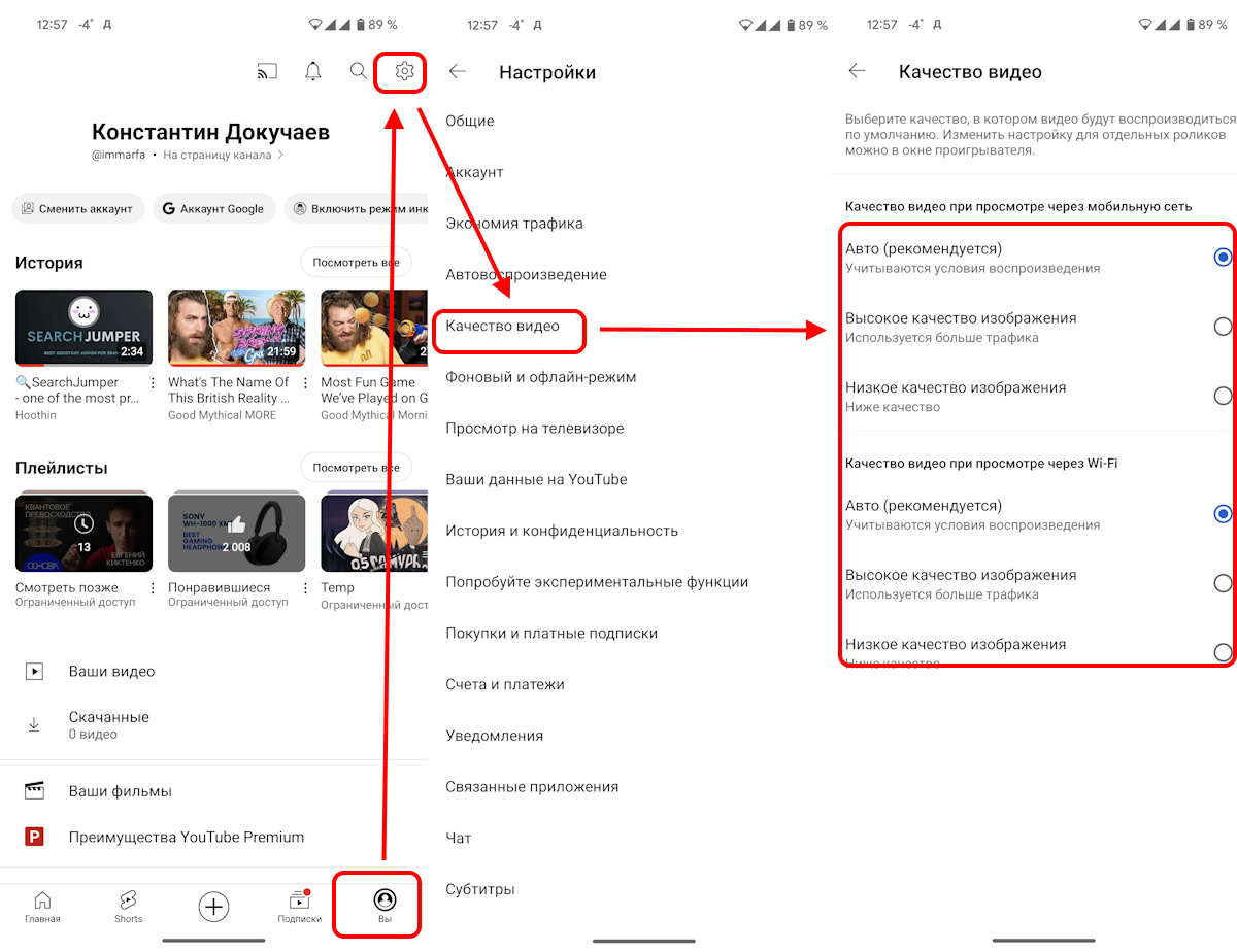 Для этого перейдите в свой аккаунт YouTube, нажмите кнопку Настройки, выберите пункт Качество видео и укажите необходимые параметры воспроизведения.