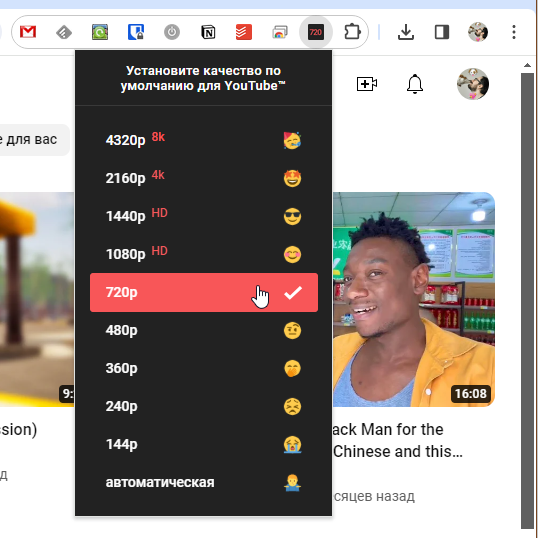 Просто установите его и выберите желаемое качество для воспроизведения всех видео. Есть варианты от 144p до 8K и автоматический выбор.