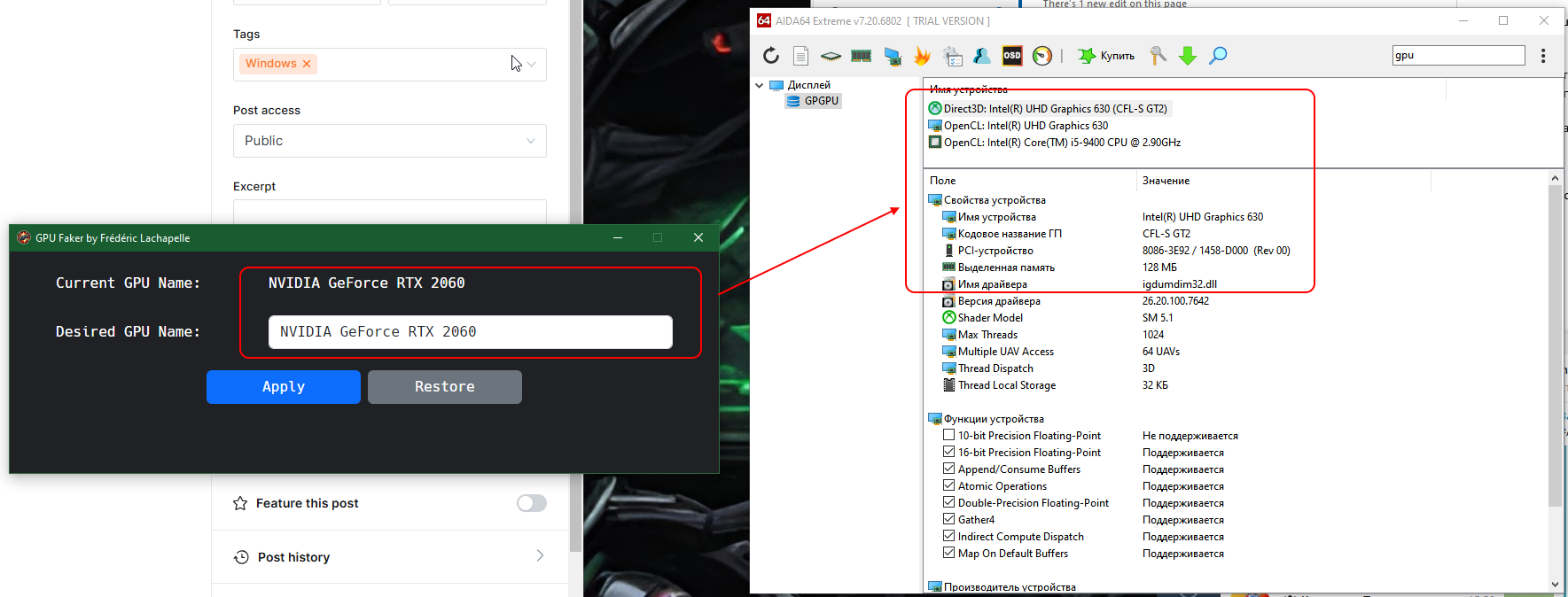 Обойти это ограничение можно с помощью утилиты GPU Faker, которая позволяет легко подделать ваше текущее значение GPU. Для этого достаточно в приложении указать желаемое название GPU и нажать Apply.