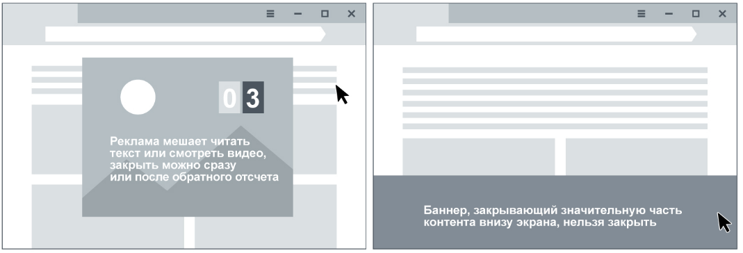 Чтобы легче прочувствовать всю боль юзеров, вспомните о форматах pop-up и catfish. Да, которые внезапно всплывают (иногда со звуком или обратным отсчетом) или перекрывают большую часть экрана.