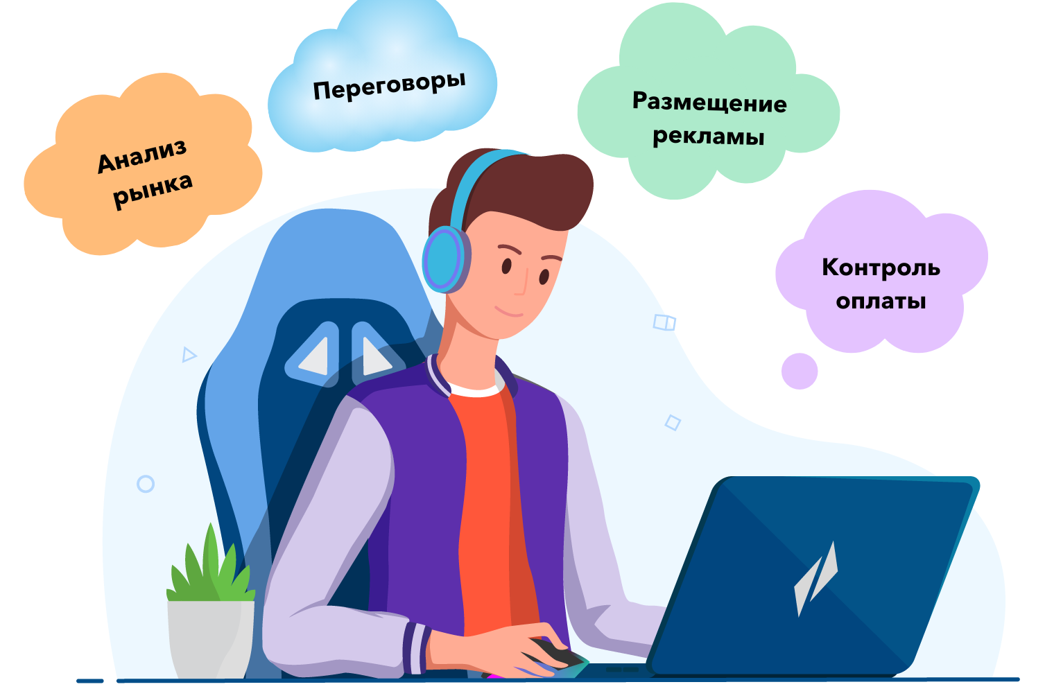 - Разработка, согласование и размещение рекламы.