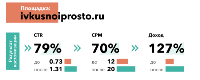 Такая подача делает знакомство с товаром максимально естественным. Результат: рост CTR, переходов и, соответственно, прибыли владельца площадки.
