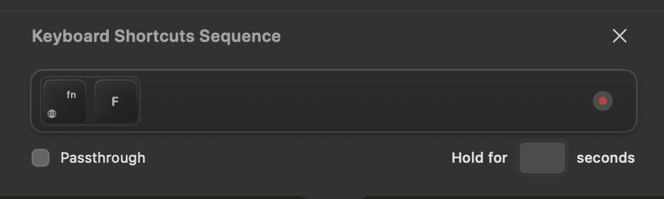 Первая — это непосредственно комбинация горячих клавиш, которые требуется нажать для выполнения команды. При этом есть возможность передать это нажатие в текущее приложение и добавить необходимость зажатия на короткий промежуток времени.