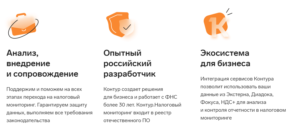 Ещё сервис Контур Налоговый мониторинг позволяет сформировать отчётность в соответствии с требованиями налоговых органов и передать её через Интернет, что облегчает процесс подачи отчётности.
