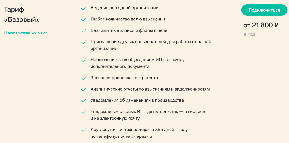 Покупка «Базового» тарифа обеспечивает: