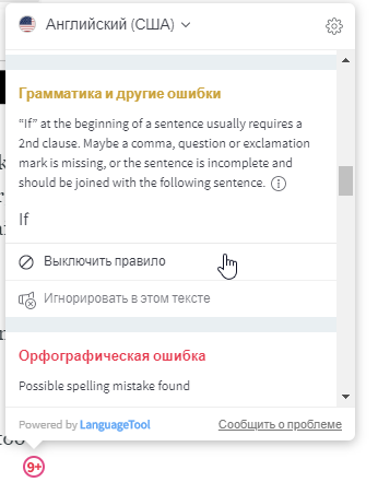Кроме этого, в отличие от Grammarly, которое на бесплатном тарифе отображает 90% нужных вам ошибок, за LanguageTool, скорее всего, придётся заплатить. В бесплатной версии работает только проверка орфографии и пунктуации. Стоит отметить, что платная версия LanguageTool значительно дешевле — всего 1499 рублей в год.