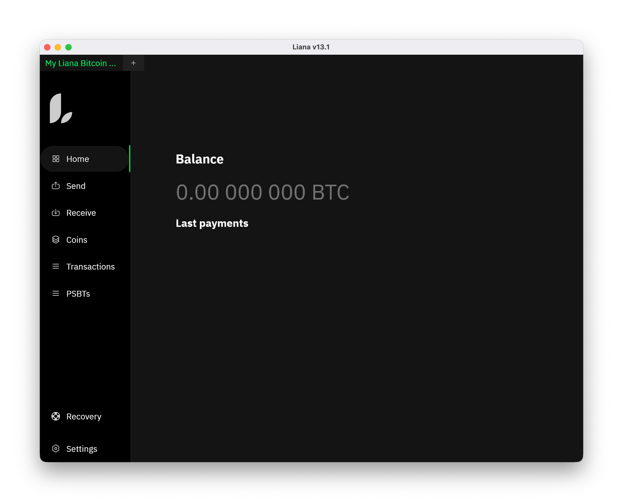 Если вы ещё никогда не пользовались Liana, то при первом запуске вам будет предложено создать новый кошелёк. Импортировать свой существующий кошелёк вы сможете далее при настройке.