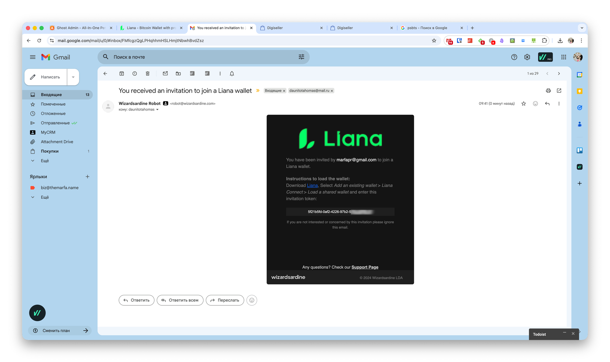 Но в настройках вы сможете предоставить доступ к кошельку любому другому человеку. Ему на почту придут инструкции для получения доступа. Если ими воспользоваться, то доступ к кошельку будет предоставлен сразу же.