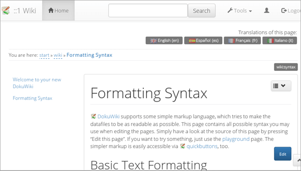 Популярное опенсорсное программное обеспечение, которое работает без каких-либо требований к базам данных. Интерфейс его прост и понятен, и именно поэтому на него чаще обращают внимание при выборе вики-программы. Кроме того, DokuWiki имеет отличные встроенные средства управления доступом и аутентификацией.