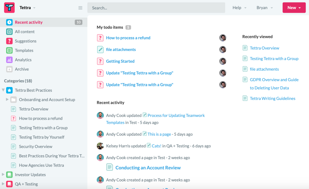 - Tettra автоматически обновляет ваши документы и позволяет узнать, какой контент полезен для ваших товарищей по команде.