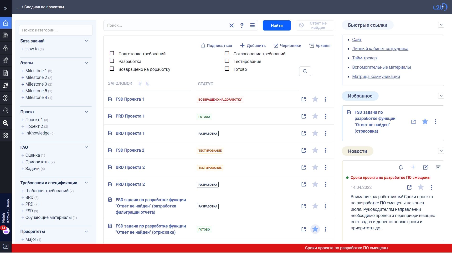 - Модуль аналитики: создание дашбордов с визуализацией статистики по поисковым запросам, популярности контента, статусам жизненного цикла документации, собственные дашборды с выносом на страницы;