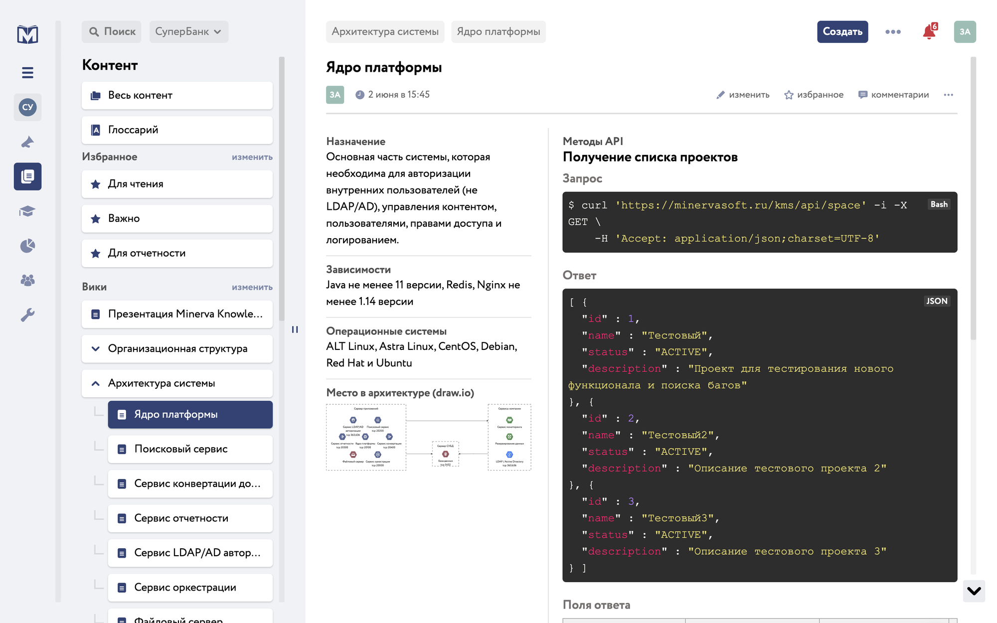 - Корпоративную базу знаний для создания и хранения документов
