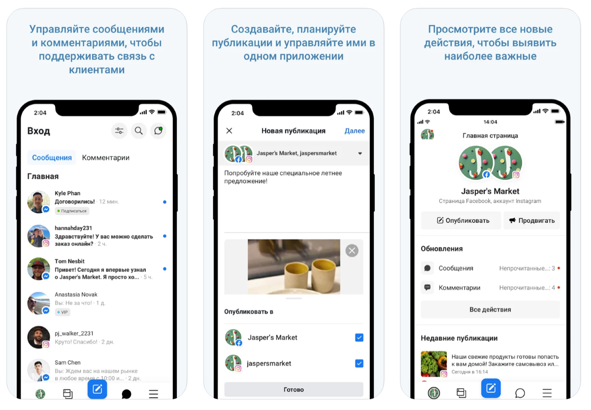 Это тоже инструмент Facebook, с помощью которого вы сможете управлять всеми своими аккаунтами в одном месте. Так вы сможете читать и отвечать на сообщения клиентов, выкладывать контент, получить доступ к аналитике и статистике, запускать рекламу и многое другое.