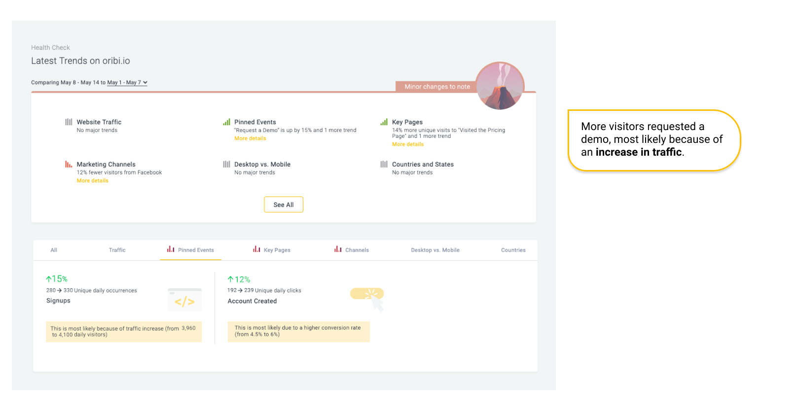 Главная цель Oribi — упростить анализ данных, которые собираются с помощью Google Analytics, и преобразовать результат анализа в практические идеи, которые можно использовать более эффективно.