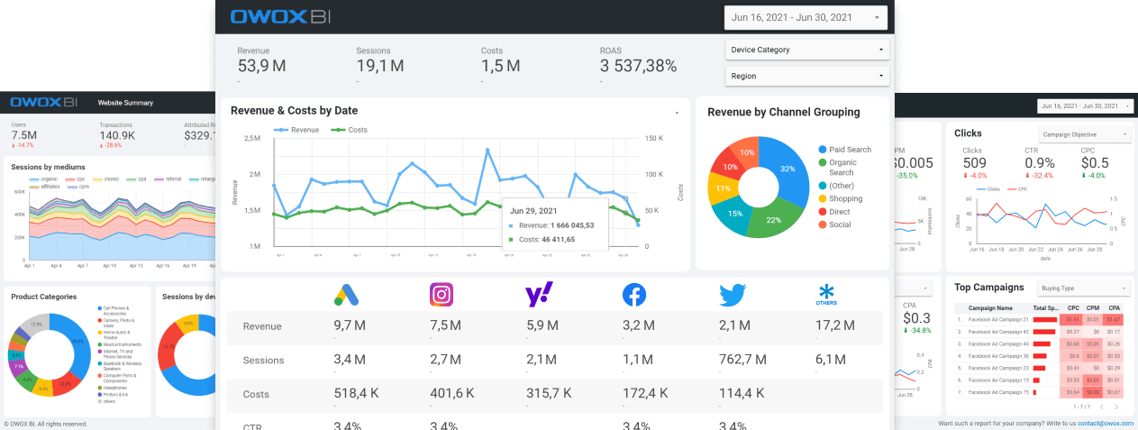 Эта платформа позволяет получать результаты путём управления данными. Её информационные панели предназначены для демонстрации прозрачности и точности достижения ваших ключевых показателей эффективности (KPI). Эти данные могут быть использованы для понимания результатов кампании, расчёта рентабельности инвестиций и определения направлений для роста.