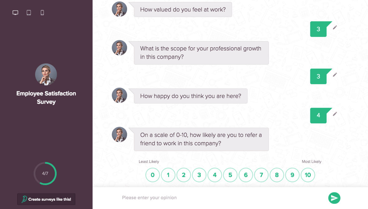 Очень популярный опросник с богатым набором инструментов для создания красивых форм. Вы можете создать готовый опрос, используя один из шаблонов, либо настроить каждый аспект формы по своему вкусу.