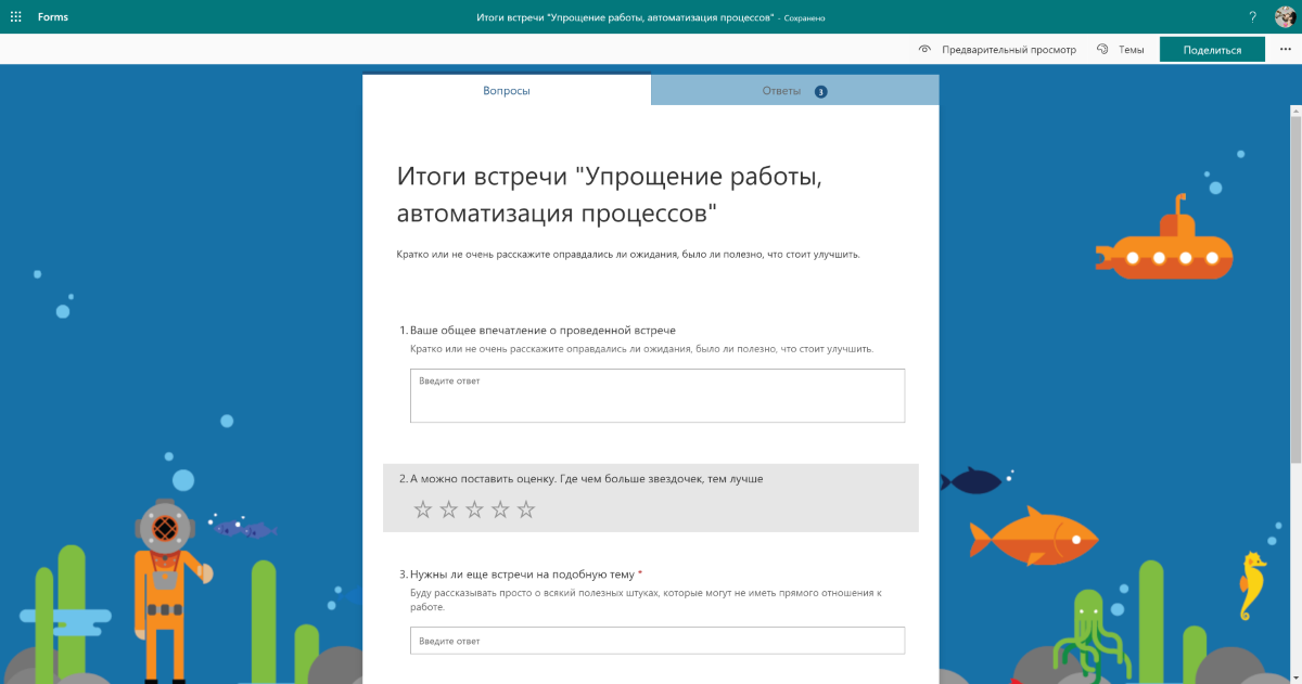 Разумеется, такая крупная компания, как Microsoft, не могла не создать свой опросник. Во многом он даже схож с гугловским сервисом, но всё же превосходит его в одном — мощном инструменте для анализа данных.