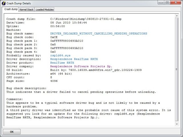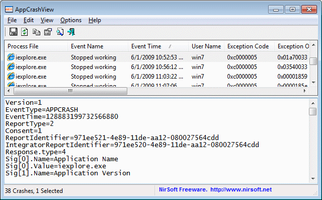 Это бесплатная утилита для отображения отчётов о сбоях процессов и приложений в ОС Windows. С её помощью вы сможете проверить, какое приложение вызвало аварийную ситуацию и почему. Программа отображает адрес сбоя, код исключения, адрес исключения, название продукта, версию файла, строки в стеке, список модулей, данные полного стека и пр. Используя эти сведения, вы можете изучить причину сбоев приложения.