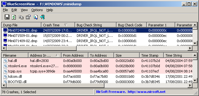 Это бесплатная утилита, используемая для анализа файлов BSoD и мини-дампа в Windows. С её помощью вы можете просматривать файлы мини-дампа, чтобы понять причины, приведшие к сбою вашего компьютера. BlueScreenView извлекает все файлы мини-дампа из расположения по умолчанию. Но можно изменить расположение по умолчанию или импортировать файл аварийного дампа из пользовательского расположения.