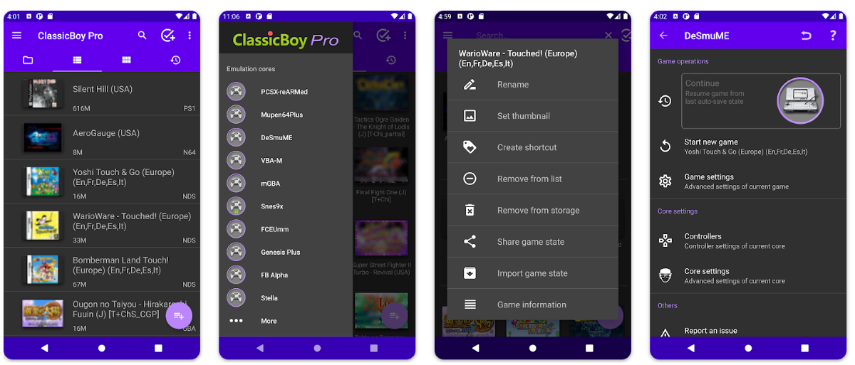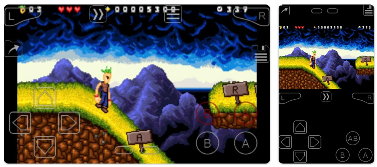 Хороший эмулятор GameBoy(Classic и Color), который может обеспечить 60FPS даже на стареньких смартфонах. Также он позволяет делать скриншоты игрового процесса в форматах JPG и GIF (то есть вы сможете создать настоящую анимашку и даже отправить её друзьям).