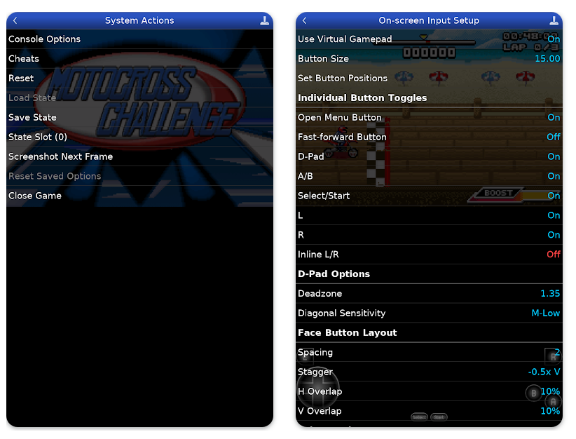 Ещё эмулятор позволяет сохранять чуть ли не каждый сделанный в игре шаг — для этого есть восемь слотов (автосохранение тоже есть). Кроме Bluetooth-геймпадов, вы можете также подключить любую клавиатуру.