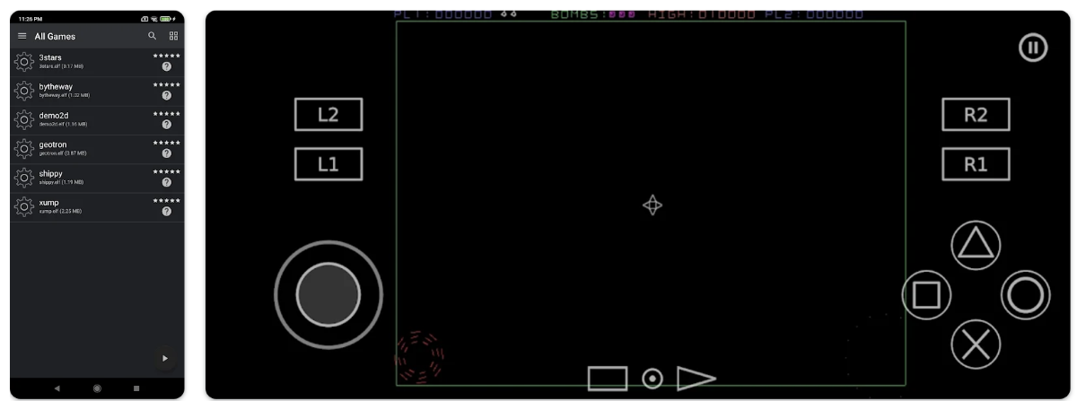 Эмулятор PS1/PSX, который раньше работал только на ПК. Из фишек — можно перенести все свои сохранения с компьютера на телефон, и можно сразиться лицом к лицу со своим другом в режиме разделённого экрана.