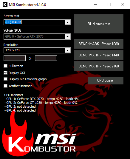 Да, это просто навороченный Furmark, но в этой версии есть одна удобная функция. Kombustor можно использовать для выявления артефактов графического процессора. Так что если вы хотите опробовать этот стресс-тест на своём графическом процессоре, то обязательно отметьте галочкой Сканер артефактов (Artifact Scanner) перед запуском.
