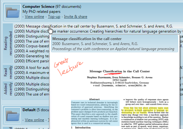 После чего вы сможете войти в саму программу и упорядочить всю свою библиотеку ссылок по папкам. Mendeleyразрешает импортировать файлы различных форматов. Есть PDF-просмотрщик, возможности для аннотирования и поиска документов по названию, автору или ключевым словам.