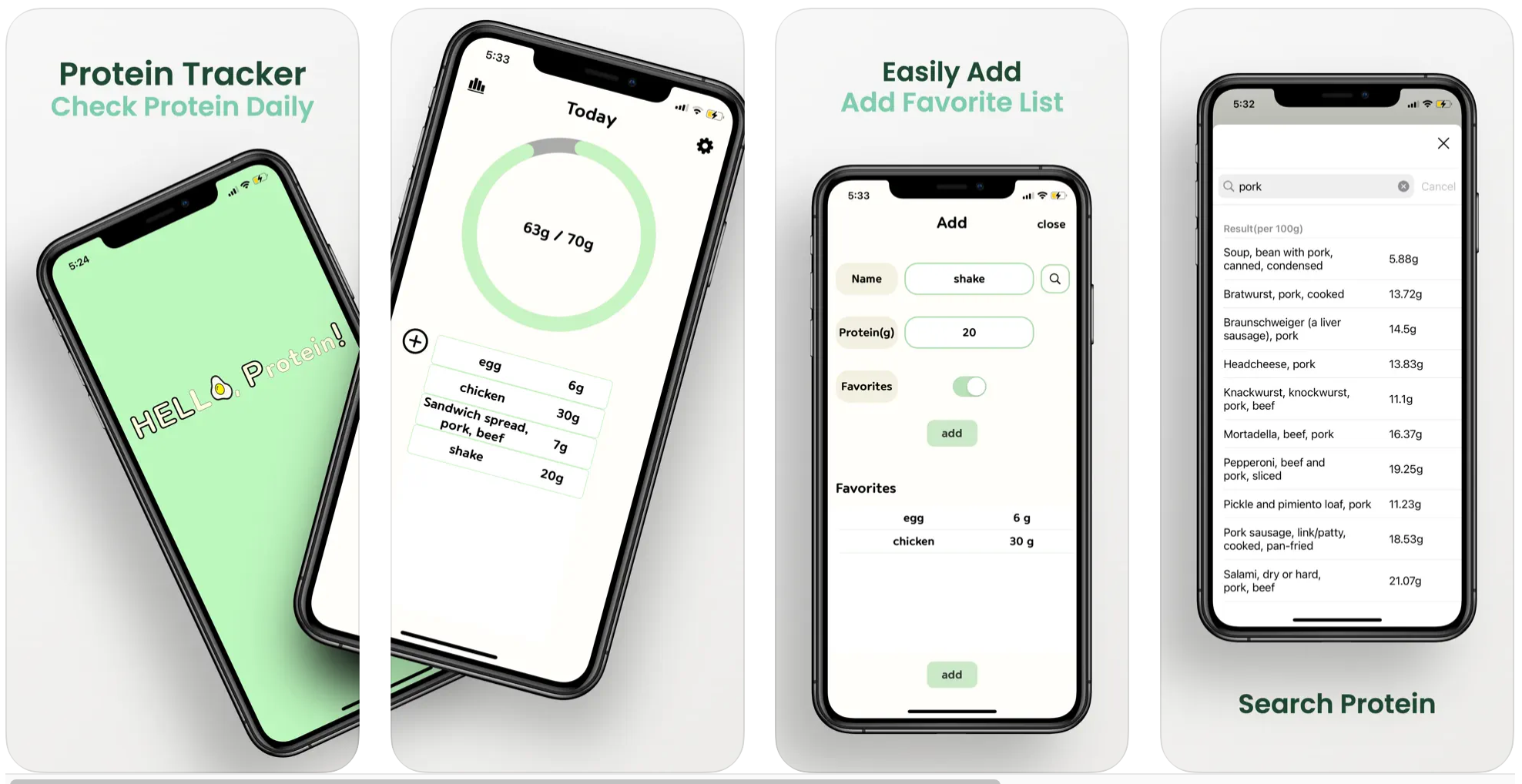 Простая приложуха для записи продуктов, которые вы съедаете в течение дня, и какое количество белка содержит каждый такой продукт. Все записи будут сохранены в истории, которую можно просматривать впоследствии.