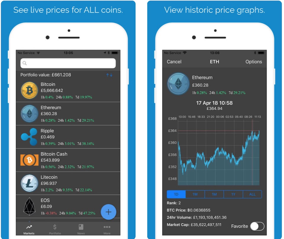 Предлагаемые вашему вниманию приложения включают в себя множество функций, которые позволят вам оставаться на вершине рынка интернет-валют. Среди доступных функций — отслеживание изменений в реальном времени, история рынка и многое другое. Самой популярной на сегодняшний день криптовалютой является биткойн, но представленные здесь программы позволяют наблюдать не только за ним, но и за Ethereum, Tether, Litecoin, Ripple и т.д. Ещё одна замечательная возможность, которую предоставят вам данные приложения, — управление своими инвестициями.