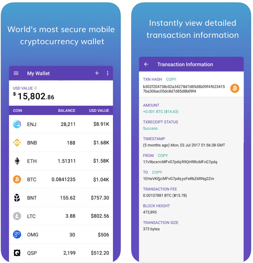 Интеллектуальный пользовательский интерфейс приложения легко адаптируется в соответствии с вашими потребностями. Комиссионный сбор за транзакцию рассчитывается динамически с помощью QR-сканера, оптимизирующего этот процесс в дальнейшем. Enjin Cryptocurrency Wallet поддерживает Bitcoin, Ethereum, Litecoin, Enjin Coin, а также все токены стандарта ERC-20. Во всех случаях доступна подробная информация о транзакциях, поэтому вы всегда знаете, что происходит. Приложение работает как под Android, так и под iOS.