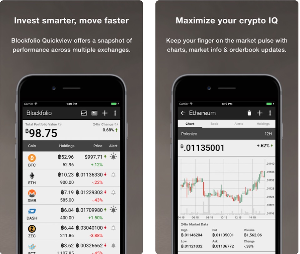 Blockfolio — это универсальное приложение для покупки/продажи Bitcoin и Altcoin. В нём имеется множество простых в использовании инструментов для отслеживания ваших инвестиций. В разделе обзора криптовалютного портфеля вы можете увидеть все свои блокчейн-активы, а также свечной график, книгу заказов и информацию о рынке.