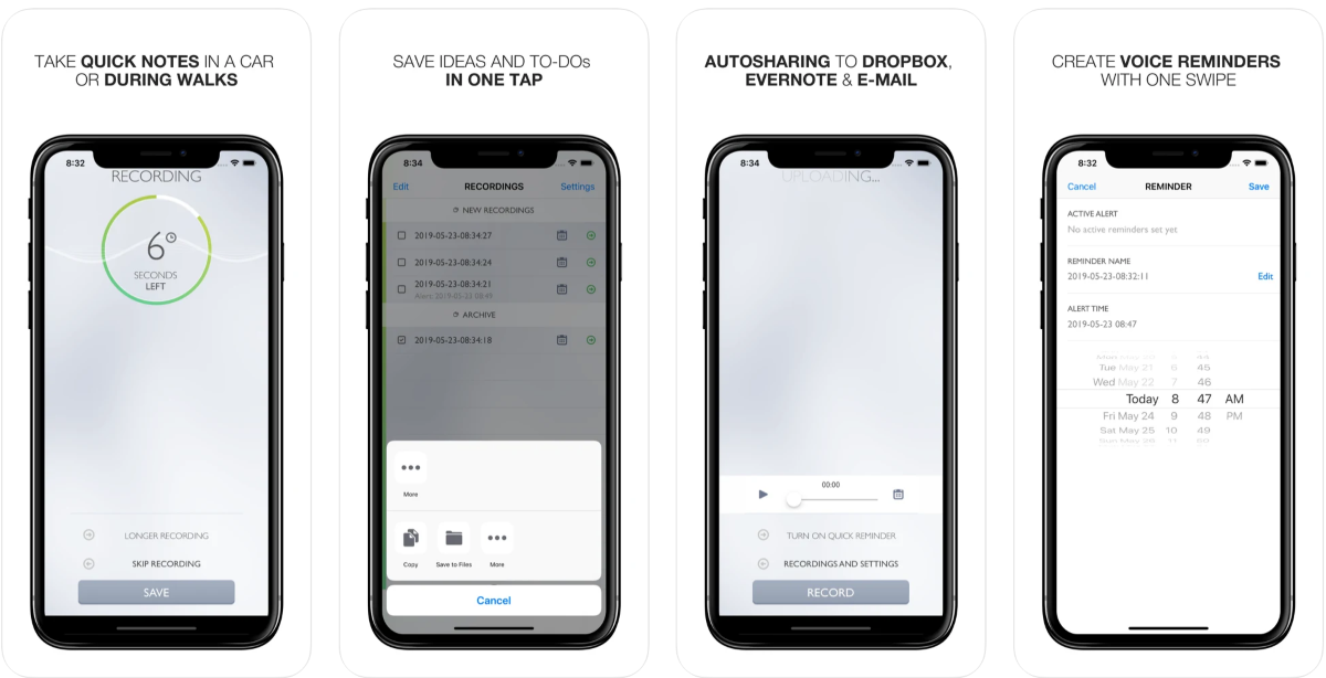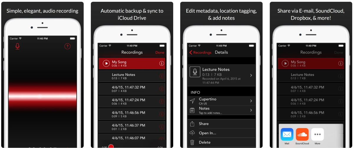 Крутое приложение для быстрой записи войсов, которое дружит с такими сервисами, как iCloud Drive, Dropbox, Evernote и др.