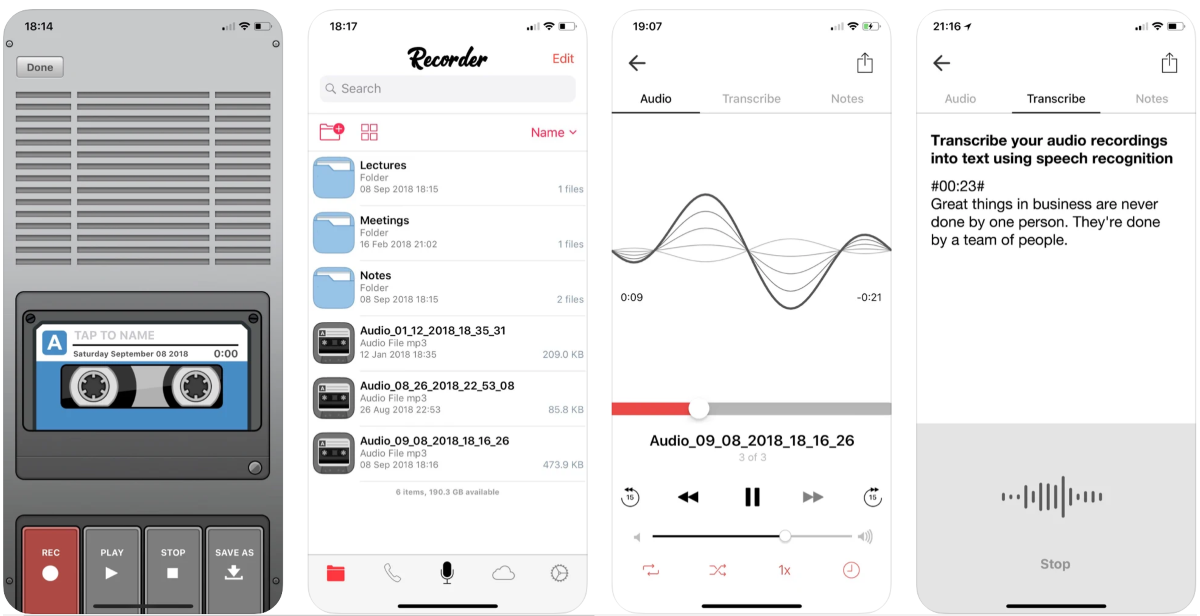 Есть куча фишек, которые могут быть полезны: управление скоростью воспроизведения, автоматическое удаление тишины из записи, возможность подключить микрофон по Bluetooth.