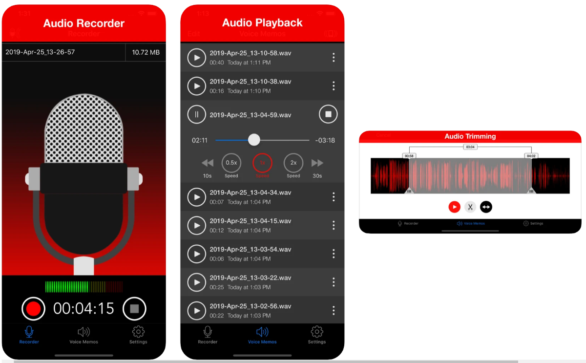 Это «родное» приложение для голосовых заметок, которое должно быть в вашем iOS-устройстве (если нет, жмите на Скачать ниже). С его помощью можно не только легко делать аудиозаметки, но и редактировать их.