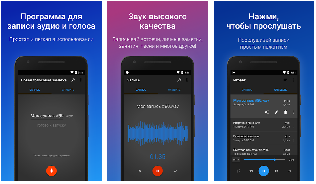 Ещё одно отличное приложение для записи войсов. Позволяет записывать в различных форматах, включая MP3, FLAC, WAV, OGG и M4A.
