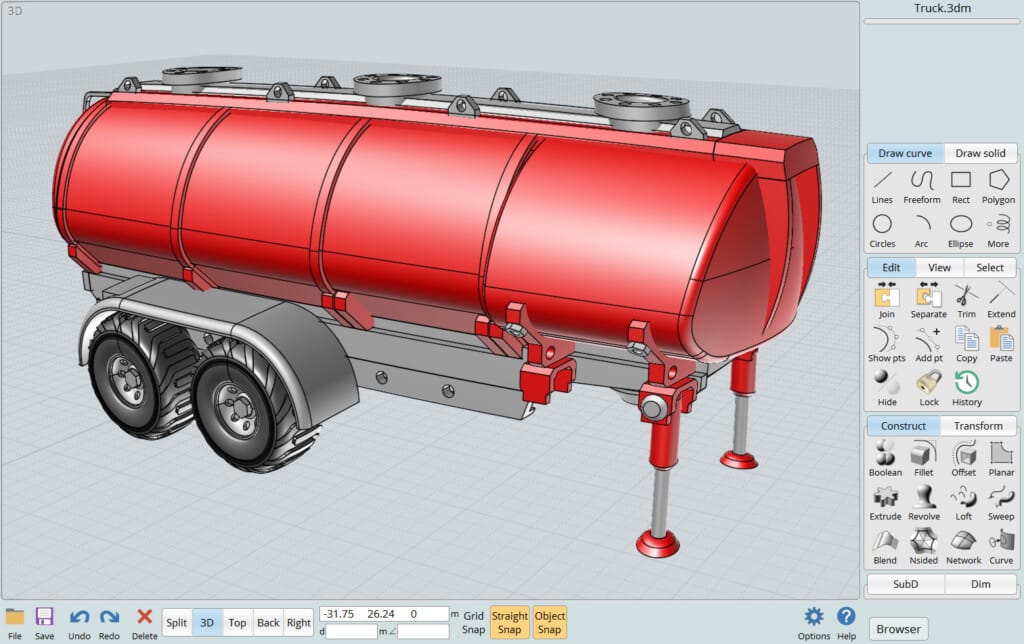 Простая в использовании программа для начинающих 3D-моделлеров. Есть возможность экспортировать сетку полигонов, перевести NURBS-модели в N-Gon полигоны и подготовить модель к 3D-печати.